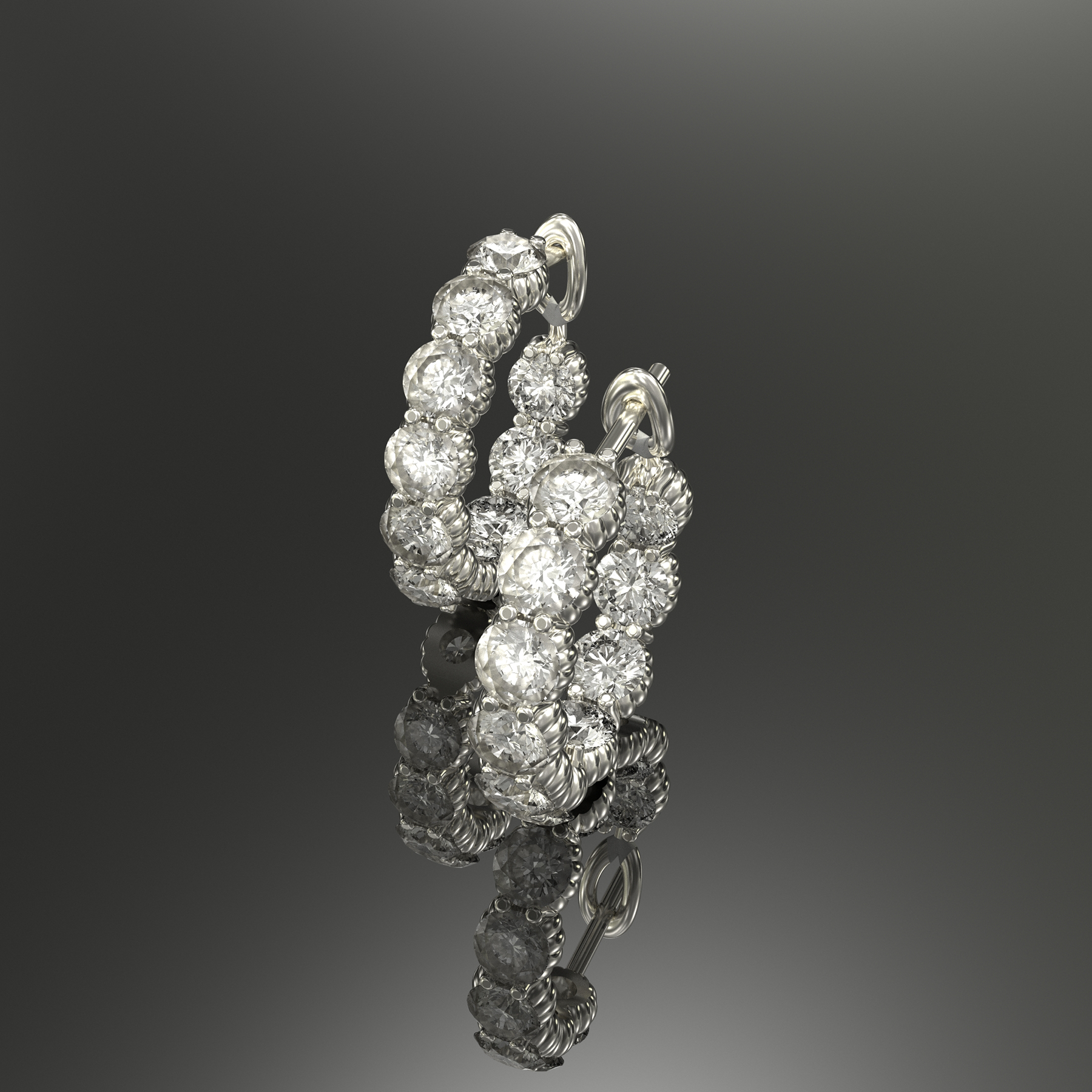 The Diamond Huggie Earrings from Kaveŋa's Bati collection feature 20 round brilliant diamonds set in a signature solid white gold setting from our Bati collection. With a total of 2 carats total diamond weight (1ct per earring), these exquisite diamond hoops present classic contemporary elegance from a unique Australian Pacific jewellery design perspective.